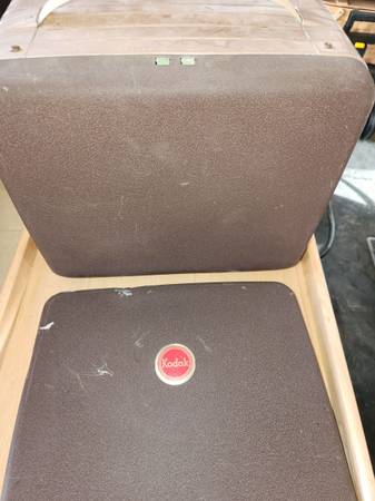 MADE BY EASTMAN KODAK IN ROCHESTER, NY. SPECIFICATIONS: F/1.6 LENS, STANDARD 115 VOLT, 60 CYCLES. COMPACT PORTABLE INCLUDES CARY CASE.